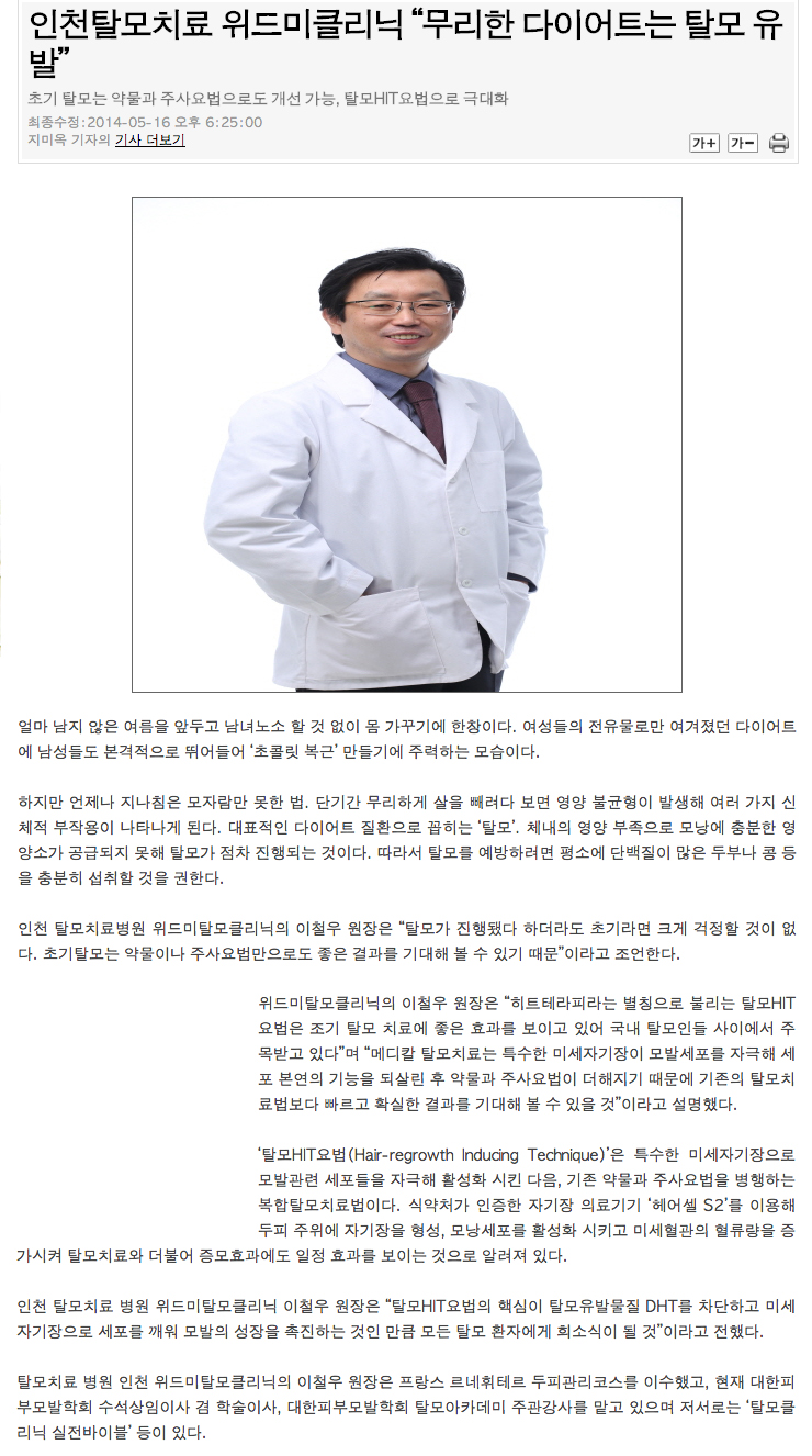 "무리한 다이어트는 탈모유발"-초기 탈모는 약물과 주사요법으로도 개선가(탈모HIT요법)